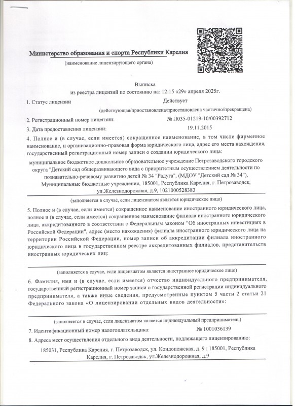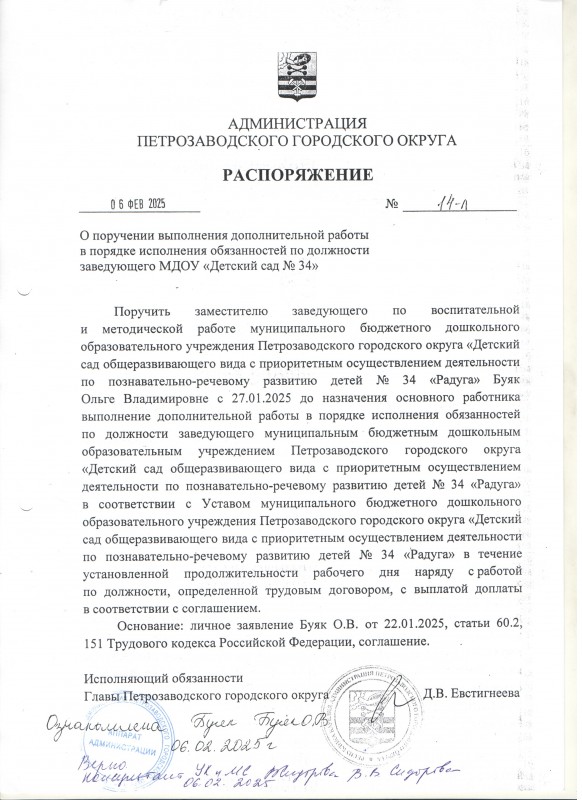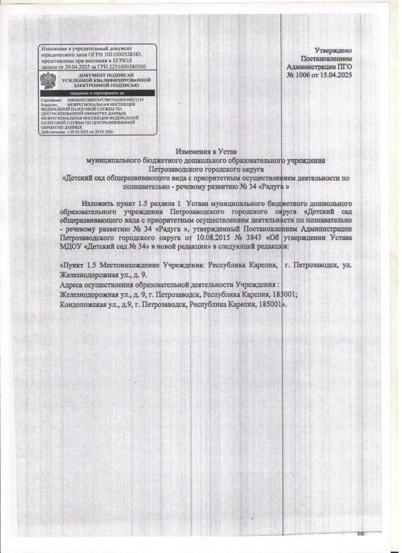 Постановление о создании МДОУ «Детский сад №34 «Радуга»