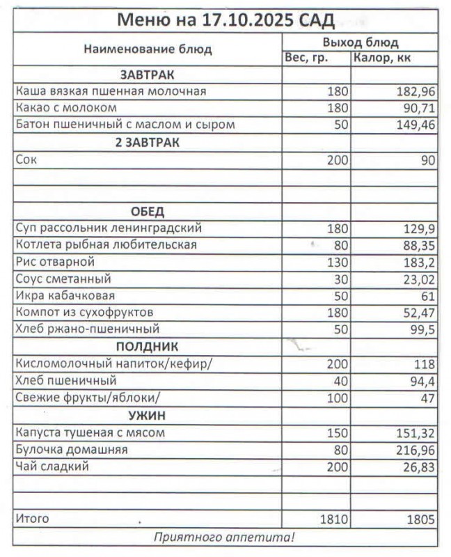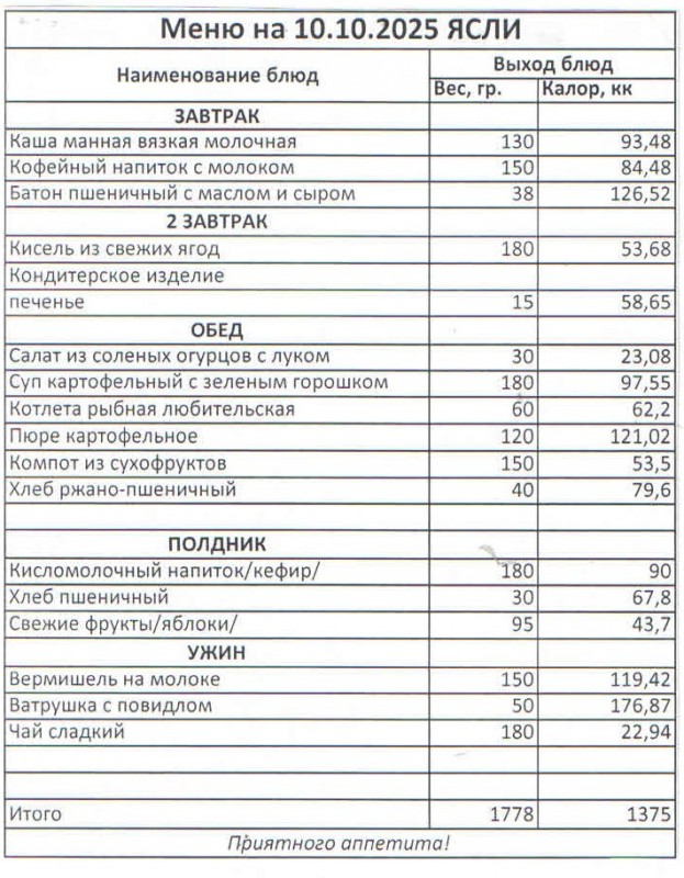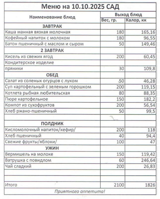 Меню на 10.10.2025 (сад)