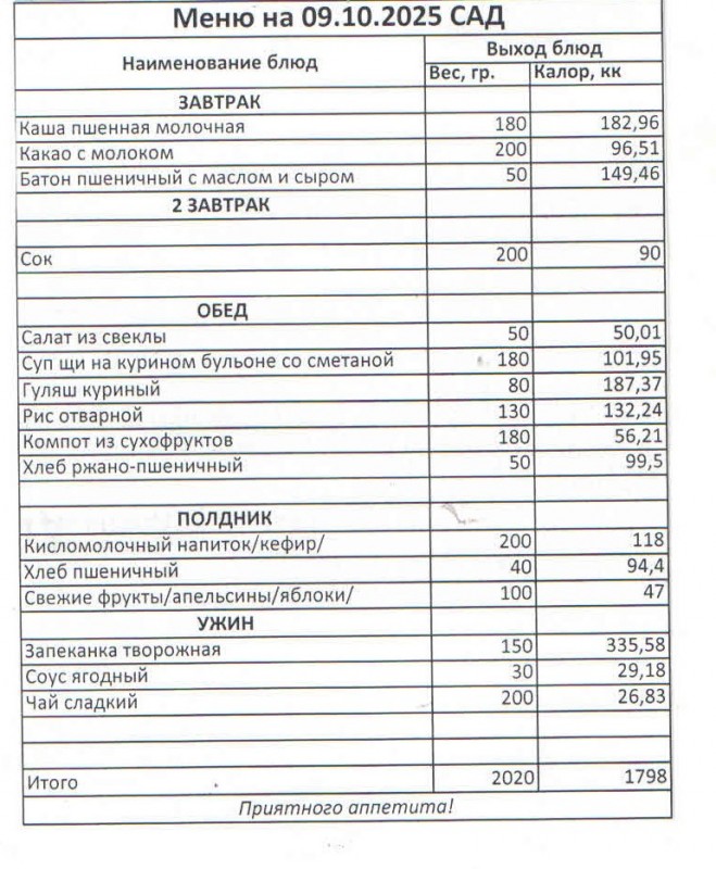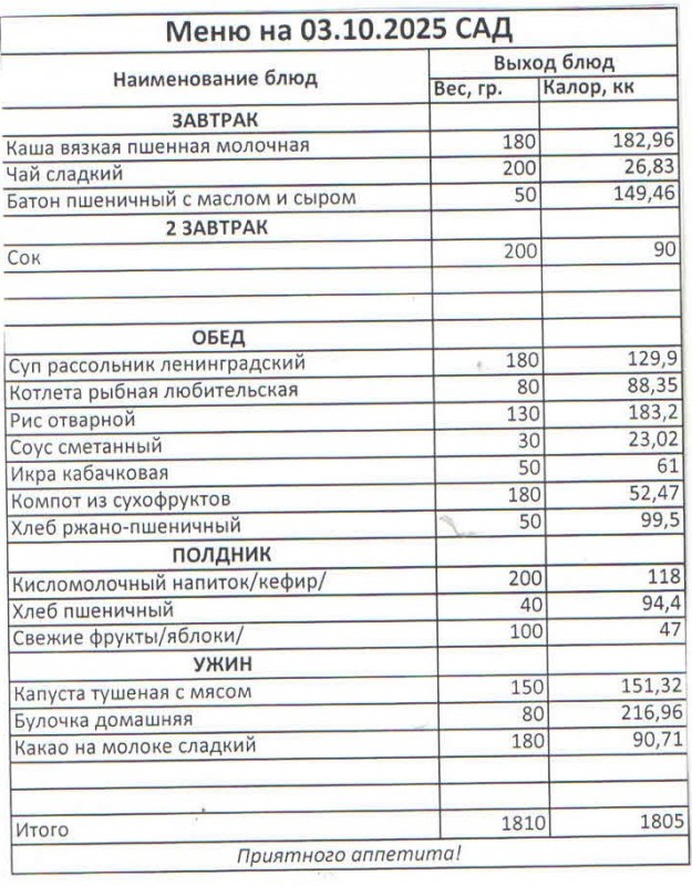 Меню на 3.10.2025 (сад)