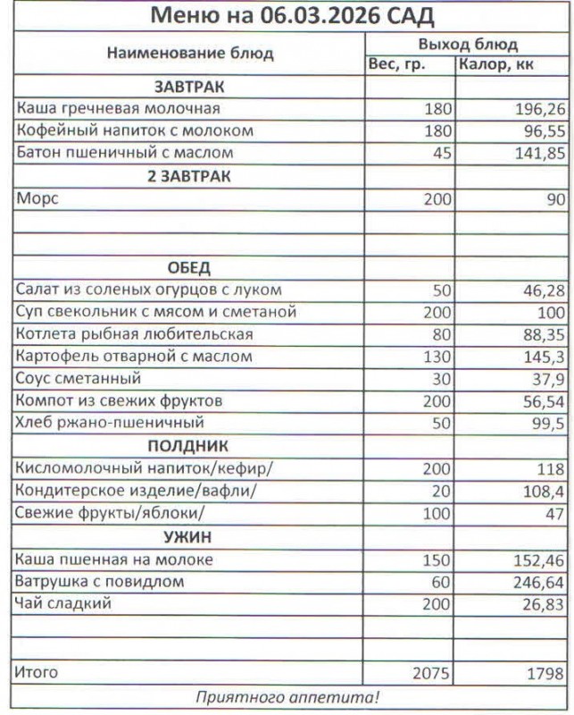 Меню на 06.03.2026 (сад)