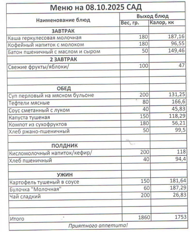 Меню на 08.10.2025 (сад)