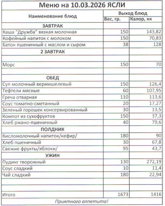 Меню на 10.03.2026 (ясли)
