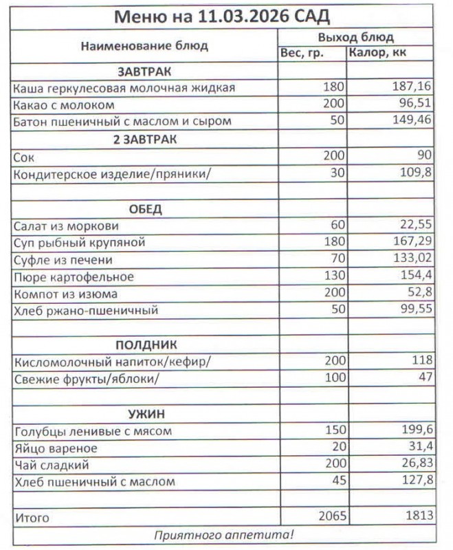 Меню на 11.03.2026 (сад)