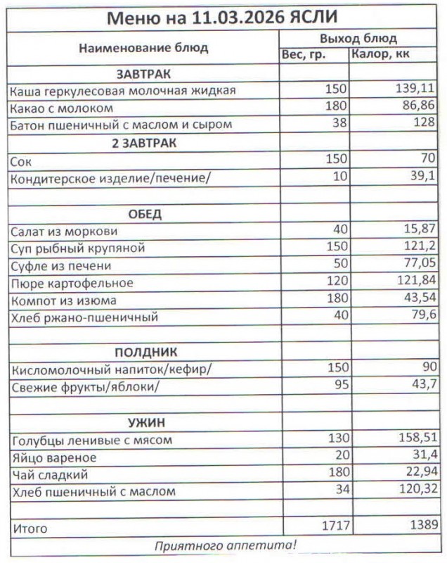 Меню на 11.03.2026 (ясли)