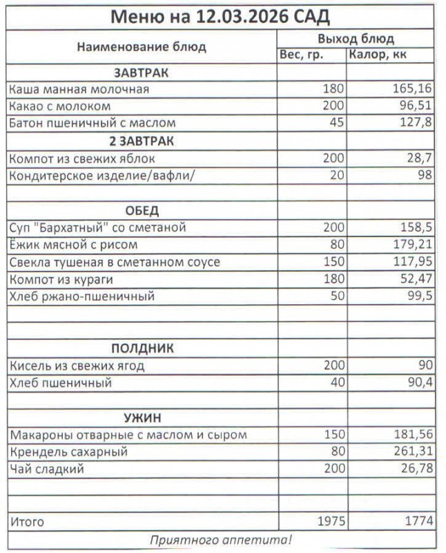 Меню на 12.03.2026 (сад)
