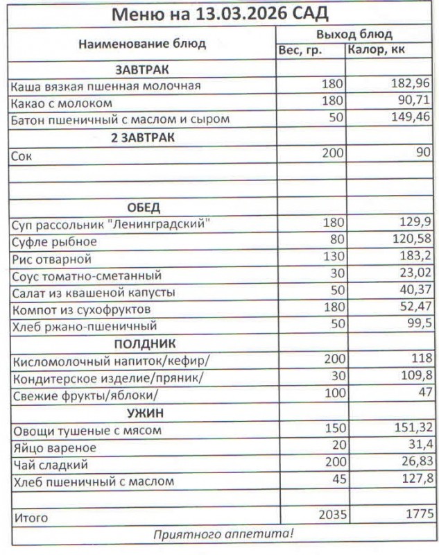 Меню на 13.03.2026 (сад)