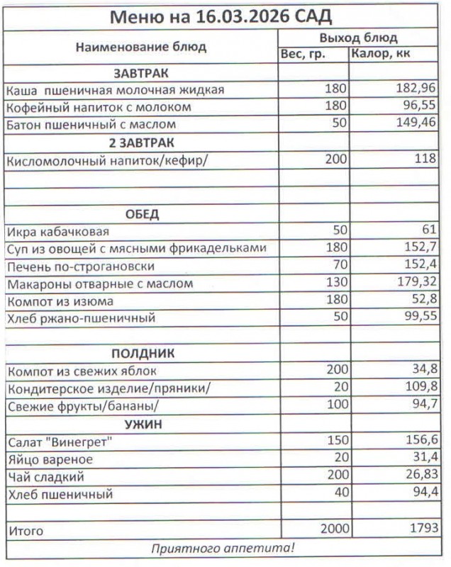 Меню на 16.03.2026 (сад)