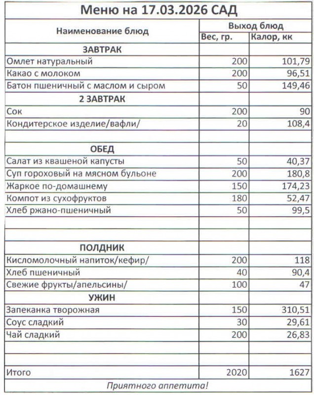 Меню на 17.03.2026 (сад)