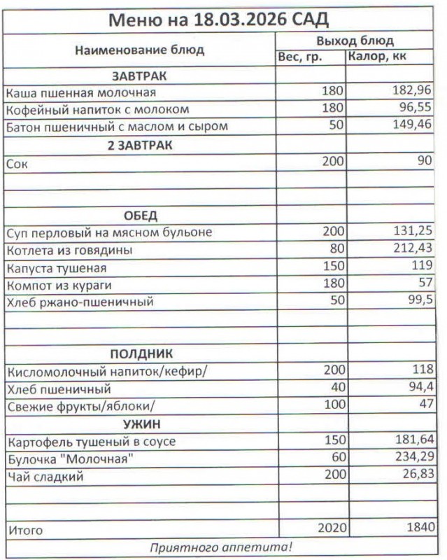 Меню на 18.03.2026 (сад)