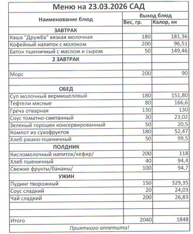 Меню на 23.03.2026 (сад)