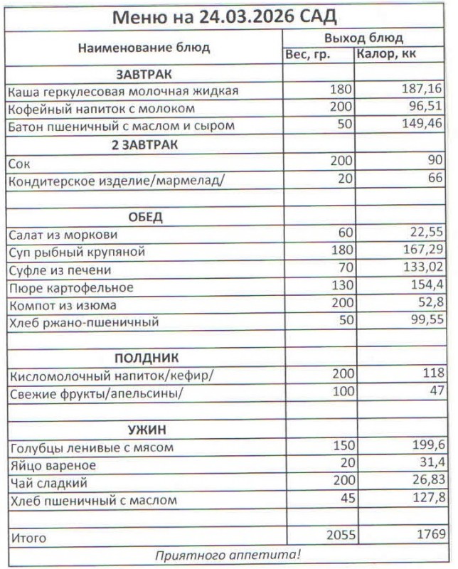Меню на 24.03.2026 (сад)