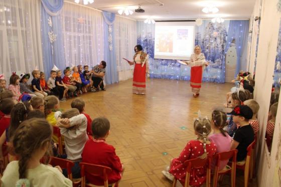 В давние времена, в Святочные вечера на Руси устраивались праздничные гуляния – по дворам ходили толпы ряженых, пели величальные песни, в которых славили хозяев, желали им доброго здоровья, богатого урожая. Все с нетерпением ожидали прихода ряженых с их колядками. Люди верили, что к кому они зайдут, тот двор в новом году удачлив будет, с достатком и прибылью. Хороший эмоциональный настрой подарили ряженые дети и воспитатели сотрудникам детского сада. В костюмах они исполнили колядные песни, присказки, заклички, прославляя Коляду, желая сотрудникам здоровья, благополучия, мира. Хозяева были щедры: приветливо встречали ряженых и раздавали угощения.
