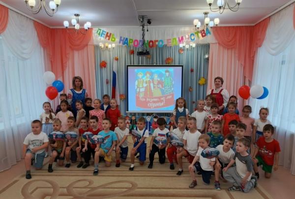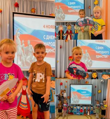 Сегодня, 4 ноября, Россия отмечает праздник - День народного единства. Этот день занимает особое место среди государственных праздников современной России. В преддверии Дня народного единства в нашем детском саду прошли праздничные мероприятия, направленные на патриотическое воспитание дошкольников, с целью формирования у детей представлений об истории России, ее героическом прошлом, а также с целью расширения представлений детей о народах населяющих Россию.