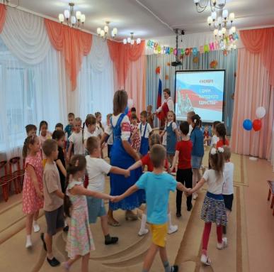 В ходе мероприятий дети знакомились с историей возникновения праздника, узнали об историческом прошлом России, закрепили знания о государственных символах, познакомились с народами населяющими нашу страну, национальными костюмами, обычаями, играми.