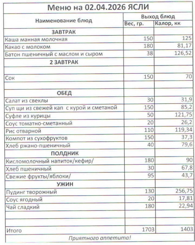 Меню на 02.04.2026 (ясли)