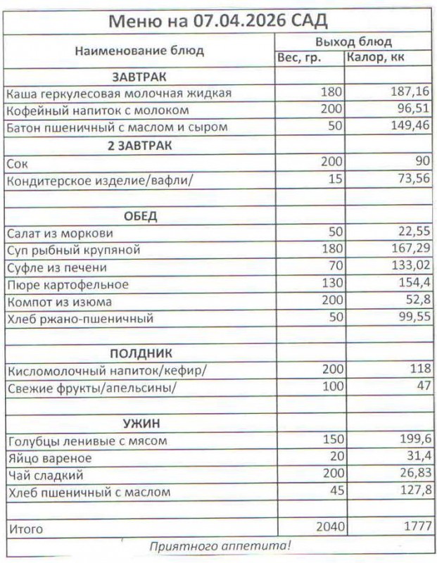 Меню на 07.04.2026 (сад)