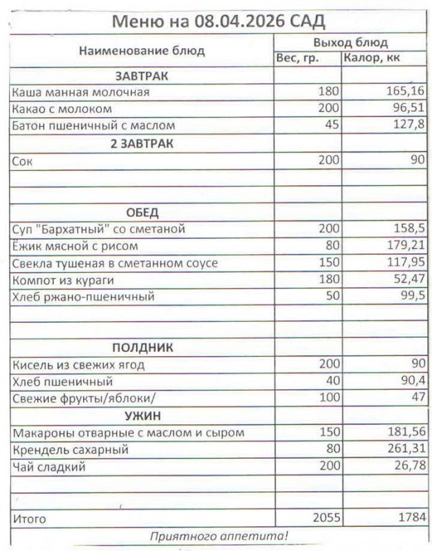 Меню на 08.04.2026 (сад)