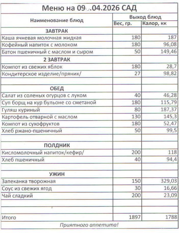 Меню на 09.04.2026 (сад)