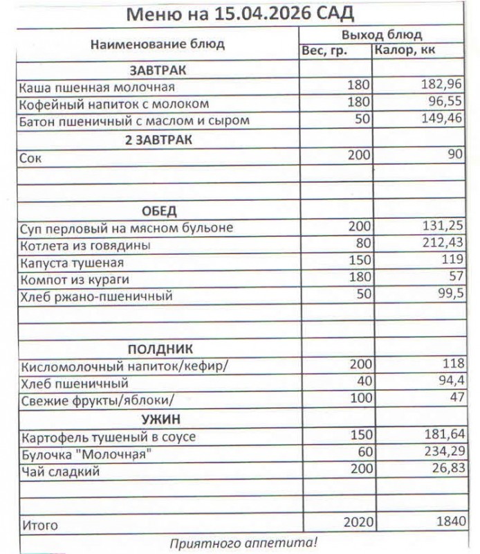 Меню на 15.04.2026 (сад)