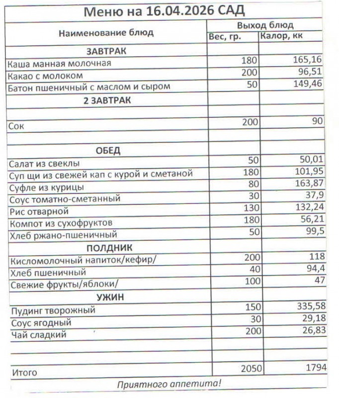 Меню на 16.04.2026 (сад)