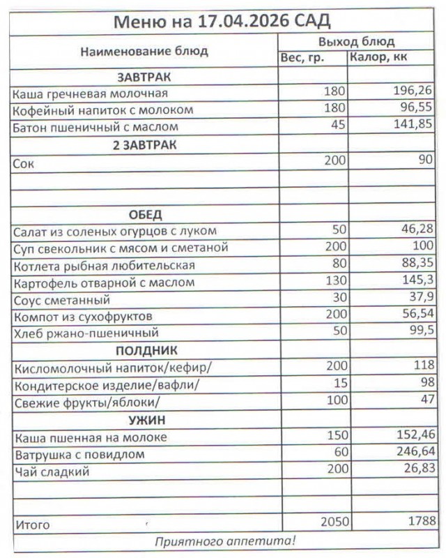 Меню на 17.04.2026 (сад)