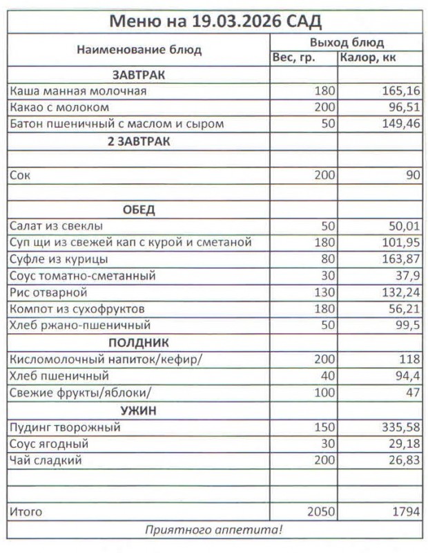 Меню на 19.03.2026 (сад)