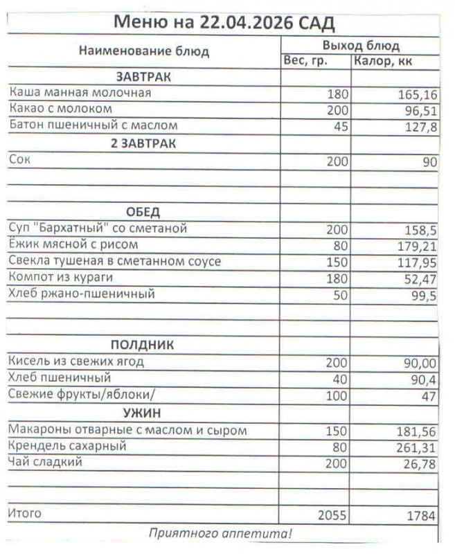 Меню на 22.04.2026 (сад)