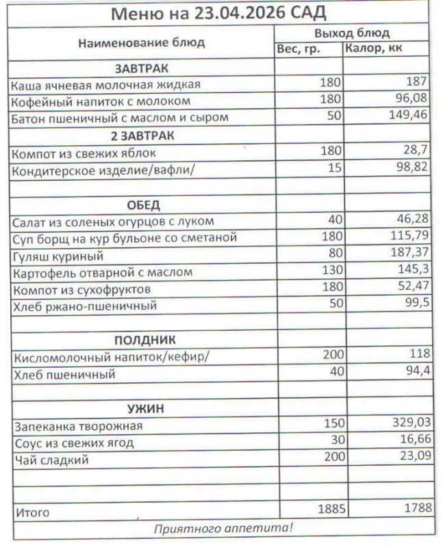 Меню на 23.04.2026 (сад)