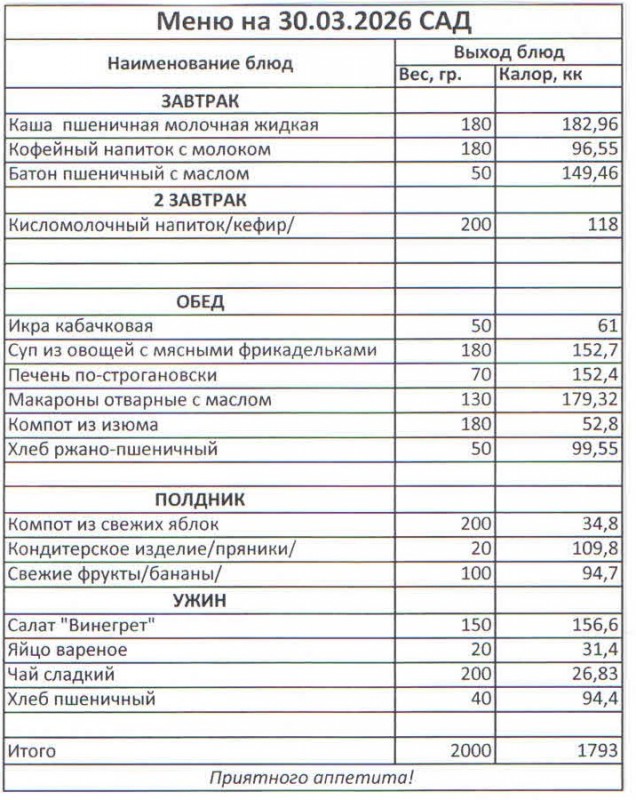 Меню на 30.03.2026 (сад)