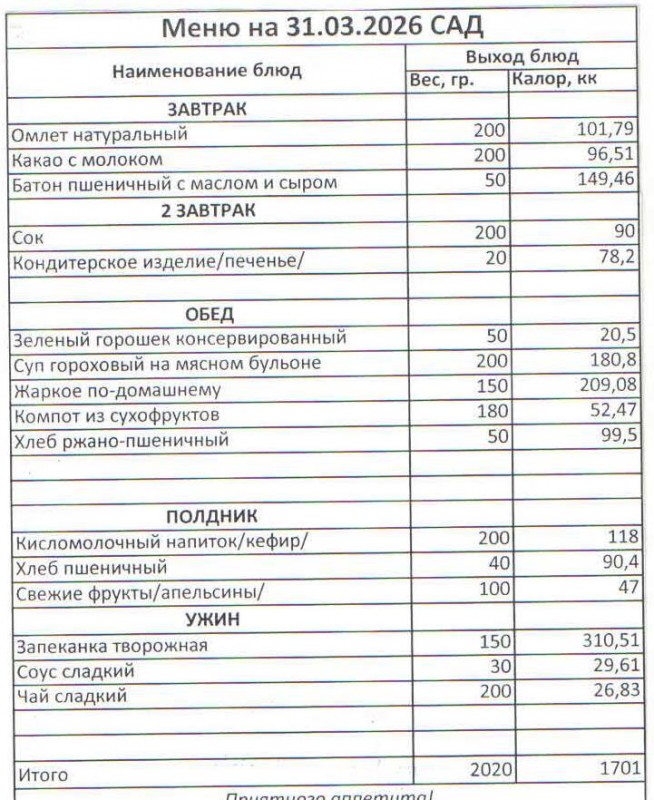 Меню на 31.03.2026 (сад)