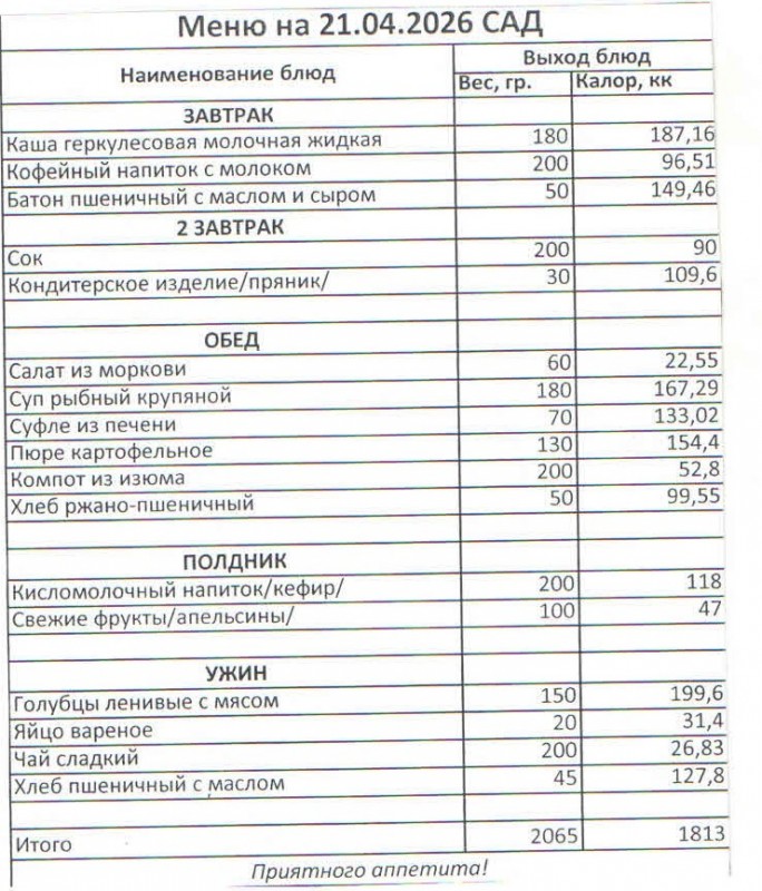Меню на 21.04.2026 (сад)